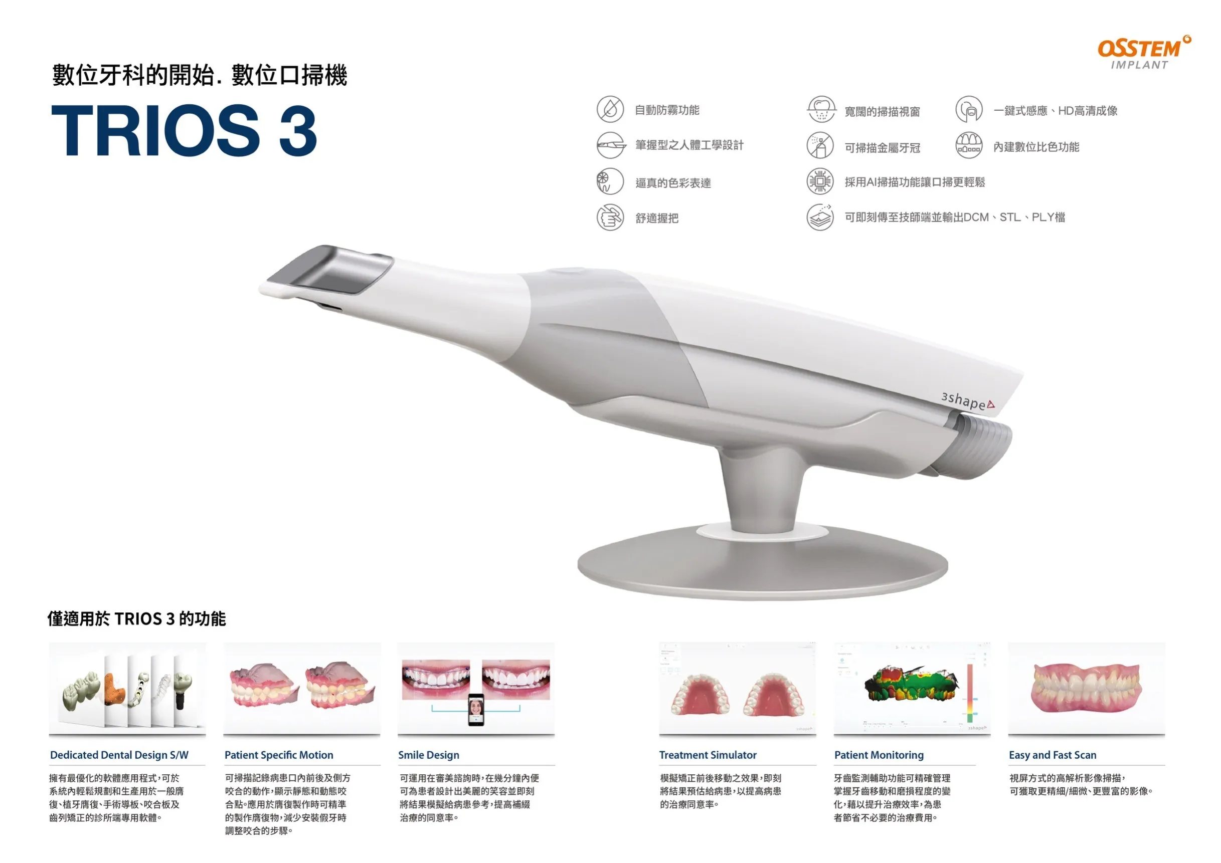 結合3D全口精密斷層掃描、環口X光2D影像和矯正專用側顱影像的先進設備,提供超高解析度、超低輻射劑量和精準的立體影像分析。
